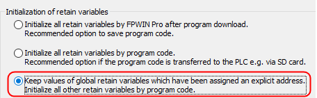 Opción de compilación “Inicializar todas las variables excepto las variables globales de retención que estén direccionadas explícitamente”.
