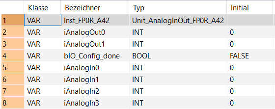 Unit_AnalogInOut_FP0R_A42Funktionsbaustein zum Schreiben und Lesen eines FP0R-A42-Moduls.