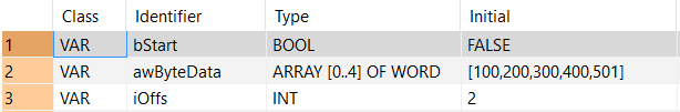 awByteData: ARRAY [0..4] OF WORD:=[100,200,300,400,501];