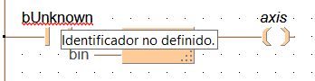 Los errores detectados al introducir el texto se indican con "subrayados ondulados" rojos en el editor, p. ej., cuando no se declara una variable. Una ventana de ayuda contextual explica el error correspondiente.
