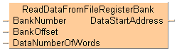 Esta instrucción lee el número de palabras especificado por DataNumberOfWords desde el Fichero de Datos, Bancos 1 o 2, según se especifique en BankNumber y comenzando en BankOffset, y escribe en DataStartAddress.