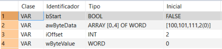 Todas las variables de entrada y de salida utilizadas para la programación de esta función han sido declaradas en la Cabecera de la POU. Se utiliza la misma cabecera de la POU para todos los lenguajes de programación.
