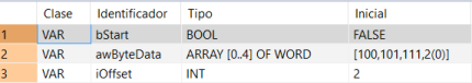 awByteData: ARRAY [0..4] OF WORD:=[100,101,111,2(0)];