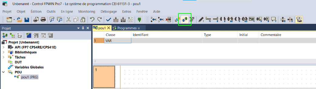 Le volet Instructions, à partir duquel vous pouvez sélectionner les opérateurs, fonctions et blocs fonctions, s’ouvre.
