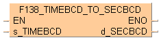 Cette fonction convertit les heures, minutes et secondes de la zone de 32 bits indiquée par s_TIMEBCD en secondes, si le déclencheur EN est TRUE.