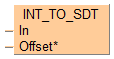 Cette fonction copie les données indépendantes de l’API en entrée In du type de données INT dans le registre spécial de données défini par la valeur en entrée Offset*. La variable en entrée In est ainsi copiée dans le registre de données DT(9000+Offset*) ou DT(90000+Offset*) avec la fonction F0_MV.