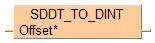 Cette fonction copie les données indépendantes de l’API du registre spécial de données DDT défini par la valeur en entrée Offset* dans le type de données DINT. Le registre de données DDT(9000+ Offset*) ou DDT(90000+ Offset*) est ainsi copié dans la variable de sortie avec la fonction F0_MV.