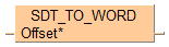 Cette fonction copie les données indépendantes de l’API du registre spécial de données DT défini par la valeur en entrée Offset* dans le type de données WORD. Le registre de données DT(9000+ Offset*) ou DT(90000+ Offset*) est ainsi copié dans la variable de sortie avec la fonction F0_MV.