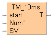 Pour des raisons de compatibilité avec des versions inférieures, cette instruction peut être compilée mais elle ne peut plus être sélectionnée dans le volet Instructions. Elle sera remplacée par :TM_10ms_FB, Temporisation à intervalles de 10ms