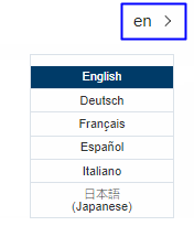 Vous pouvez accéder aux informations souhaitées via le navigateur à gauche ou en entrant le terme recherché dans la zone de recherche (les opérateurs de recherche courants sont pris en charge). Pour changer de langue, sélectionnez la langue souhaitée à partir de la liste déroulante.