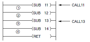 Dans FPWIN GR/FPWIN GR7, des sous-programmes avec plusieurs entrées et une seule sortie (RET) peuvent être programmés pour les FP2/FP2SH/FP10SH.