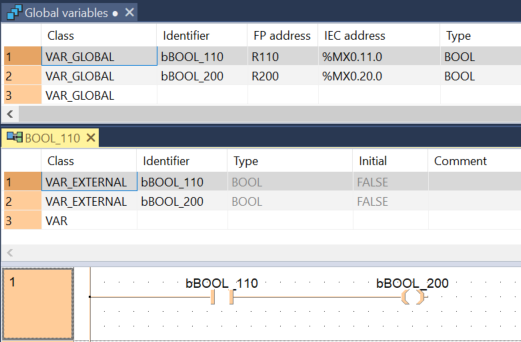 WR11 et WR20 sont prises en compte lorsque vous utilisez des variables globales avec des adresses explicites comme indiqué dans l’exemple ci-dessous :