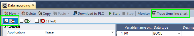 Le drapeau de fin d’enregistrement des données de la destination par ex. LOG0 est TRUE. Lorsque le déclenchement de l’arrêt est détecté, les drapeaux sys_bIsLog0TraceStopTriggerDetected et sys_bIsLog0DataRecordingDone passent à TRUE.