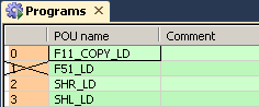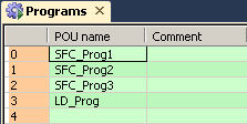 La procédure ci-dessous permet de contrôler périodiquement le programme qui est ainsi affecté à la tâche "Programmes".Les programmes SFC (POU SFC) doivent toujours être entrés l’un après l’autre dans le gestionnaire des tâches. Aucun autre type de POU n’est autorisé entre ces programmes.