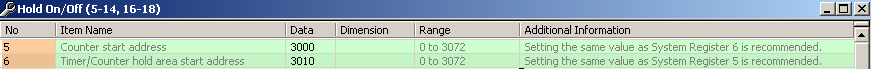 Dans une version antérieure à V2.3.56, le numéro 3071 a été affecté au compteur. Ce numéro est situé dans la zone maintenue. A partir de la version V2.3.56, le compilateur essaie d’affecter le compteur à la zone non maintenue. Cependant, cette dernière n’apparaît pas dans les registres système 5 ou 6.