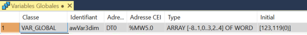 Le tableau déclaré pourrait ressembler à ce qui suit :