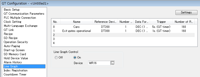 GT_LineGraphControl_DUTDUT prédéfini avec éléments superposés. Ce DUT peut être utilisé pour la communication entre un automate et un écran tactile de la série GT.