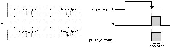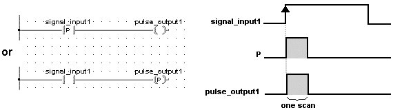 Un drapeau d’impulsion (P) devient TRUE pendant un cycle uniquement. L’état TRUE/FALSE n’est pas émis en sortie. Il est exécuté uniquement dans le programme.