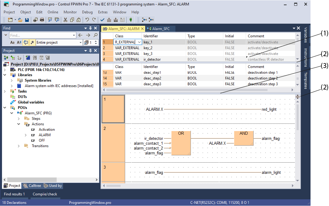 Vous pouvez ajuster la hauteur de la fenêtre en faisant glisser la barre (3) entre l’en-tête du POU et le corps du POU avec la souris (pointeur de la souris :