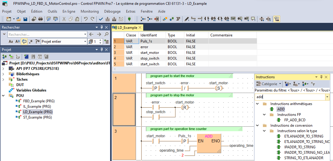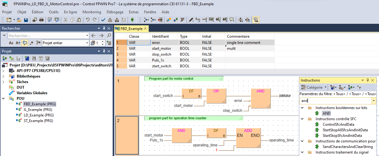 Pour ouvrir l’aide en ligne et obtenir des informations sur une fonction, un bloc fonction ou un opérateur, sélectionnez l’objet dans le corps du POU et appuyez sur <F1>.