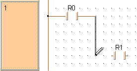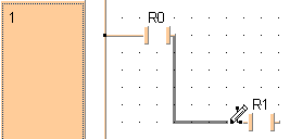 Utilisez le mode placement pour sélectionner des éléments tels que des contacts, des bobines, des sauts, des retours de sauts, des variables d’entrées et de sorties à partir de la barre d’outils et positionnez-les dans la fenêtre de programmation.