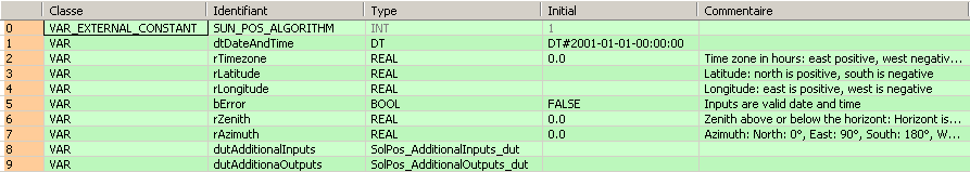 (* SolPos Algorithm: 0.00257° accuracy, 3700 steps, 6.3 ms cycle time on a FP-X *)