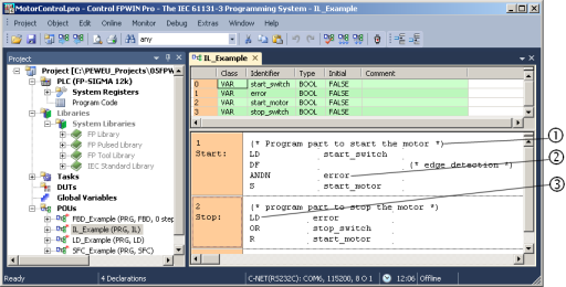 L’éditeur de listes d'instructions est un éditeur à base de textes avec opérateurs standard selon IEC 61131-3.