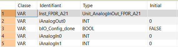 Unit_AnalogInOut_FP0R_A21Block fonction permettant d’écrire dans un module FP0R-A21 ou de lire les données du module.