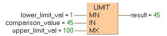 result:=LIMIT(MN:=lower_limit_val, IN:=comparison_value, MX:=upper_limit_val);LD |