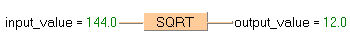 La racine carrée de la valeur d’entrée (input_value) est calculée et écrite dans la valeur de sortie (output_value).