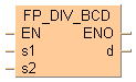 Cette instruction FP divise les données BCD spécifiées par s1 par la valeur de s2 lorsque le déclencheur EN est TRUE. Le résultat est sauvegardé dans d.