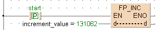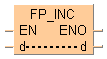 Cette instruction FP ajoute 1 aux données spécifiées par d lorsque le déclencheur EN est TRUE. Le résultat est sauvegardé dans d.
