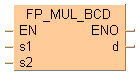 Cette instruction FP multiplie les données BCD spécifiées par s1 et s2 lorsque le déclencheur EN est TRUE. Le résultat est sauvegardé dans d.
