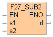 Les données de 16 bits ou les constantes équivalentes à 16 bits désignées par s2 sont soustraites des données de 16 bits ou des constantes équivalentes à 16 bits désignées par s1 si le déclencheur EN est TRUE. Le résultat est sauvegardé dans d. Toutes les valeurs de 16 bits sont traitées comme des valeurs integer.