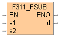 Les données de type nombre réel désignées par s2 sont soustraites aux données de type nombre réel désignées par s1 lorsque le déclencheur passe à TRUE. Le résultat est sauvegardé dans d.