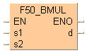 Les zones de 16 bits pour données BCD à 4 digits ou constantes équivalentes à des données BCD à 4 digits désignées par s1 et s2 sont multipliées si le déclencheur EN est TRUE. Le résultat est sauvegardé dans d (zone de 8 digits).