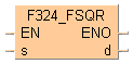 La racine carrée de données en nombre réel indiquée par s est calculée et sauvegardée dans la zone de 32 bits indiquée par d.