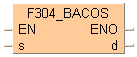 La fonction calcule l’arc cosinus d’une valeur BCD définie en entrée s dans un tableau (ARRAY) à trois éléments. Le résultat est renvoyé en valeur d’angle BCD, située entre 0° et 360° (16#0 à 16#360), en sortie d.