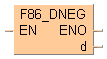 Cette instruction calcule le complément à deux des données de 32 bits désignées par d lorsque le déclencheur EN est TRUE. Le complément à deux des données de 32 bits d’origine est sauvegardé dans d.