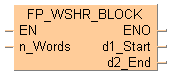 Cette instruction FP décale la plage de données spécifiée par d1_Start et d2_End du nombre de mots spécifié par n_Words vers la droite (poids faible) lorsque le déclencheur EN est TRUE.