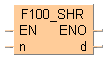 Cette instruction décale n bits de la zone de données 16 bits spécifiée par d vers la droite (décalage en direction du bit de poids faible), lorsque le déclencheur EN est TRUE.