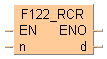 Cette instruction exécute une rotation à droite de n bits des données 16 bits spécifiées par d, y compris des données du drapeau de retenue, lorsque le déclencheur EN est TRUE.