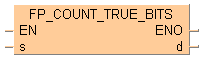 Cette instruction FP compte le nombre de bits qui sont TRUE dans les données spécifiées par s lorsque le déclencheur EN est TRUE. Le résultat est sauvegardé dans d.