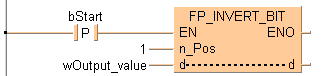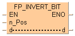 Cette instruction FP inverse [1 (TRUE) ® 0 (FALSE) ou 0 (FALSE) ® 1 (TRUE)] le bit en position n_Pos dans la zone de données, spécifiée par d, lorsque le déclencheur EN est TRUE. Les bits autres que le bit spécifié ne changent pas.