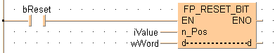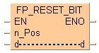 Cette instruction FP met à l’état 0 le bit spécifié par n_Pos, la position du bit des données spécifiées par d, lorsque le déclencheur EN est TRUE. Les bits autres que le bit spécifié ne changent pas. L’intervalle de n_Pos est 0–15.