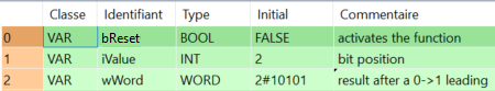 END_VARLa fonction est exécutée lorsque la variable bReset est sur TRUE. Le bit en position 2 est réinitialisé sur 0.