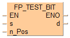 Cette instruction FP vérifie l’état 1 (TRUE) ou 0 (FALSE) de la position du bit n_Pos dans la valeur d’entrée de s, lorsque le déclencheur EN est TRUE. Le résultat est sauvegardé dans d..