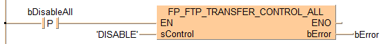 END_VARLorsque bDisableAll bascule de FALSE à TRUE, l’instruction est exécutée. Le mot de contrôle 'DISABLE' désactive le transfert FTP vers toutes les unités Ethernet.