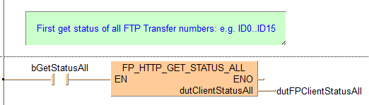 END_VARLorsque bGetStatusAll est TRUE, l’instruction est exécutée. Les valeurs d’état de toutes les unités Ethernet sont écrites dans le DUT dutFPClientStatusAll.