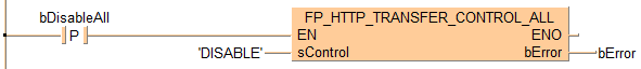 END_VARLorsque bDisableAll bascule de FALSE à TRUE, l’instruction est exécutée. Le mot de contrôle 'DISABLE' désactive le transfert HTTP vers toutes les unités Ethernet.